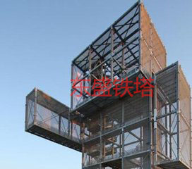 結構: 瞭望塔結構一般為鋼結構塔架,拆、裝方便。平面為四邊形自立式或拉線式。主體曲線一般為折線型,內部結構為交叉式。上部設工作平臺或值勤房。內部設有斜向爬梯或旋轉爬梯。